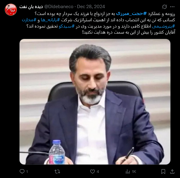 داستان صعود حجت مبرزی به مدیرعاملی شرکت استراتژیک پایانه‌ها و مخازن پتروشیمی، دیگر یک ابهام مدیریتی یا یک سوال درباره تناسب «انبارداری» با «مدیرعاملی» نیست؛ این، روایت عریان سیطره «سفارشات فامیلی» بر تخصص‌گرایی و افشای مکانیزمی است که در آن، منافع عمومی قربانی یک «قول» به «بزرگتر» می‌شود.